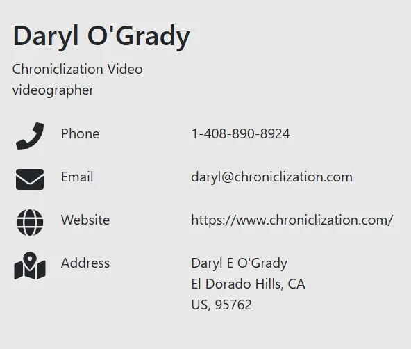 I spent my career designing circuit boards in Silicon Valley, and then learned videography for life history interviews. I like helping people tell their story, so I began Chroniclization Video. I began another project called Brilliant Lights where I am working on several documentaries to tell compelling, inspiring stories.